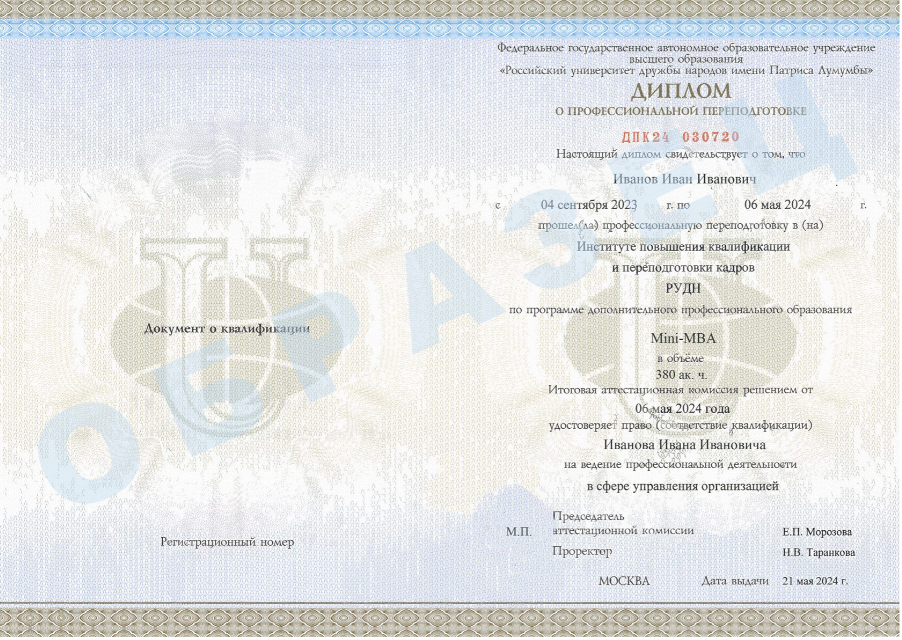 По окончании курса вы получите диплом государственного образца от РУДН, который высоко ценится в профессиональных кругах и открывает двери к новым карьерным вершинам